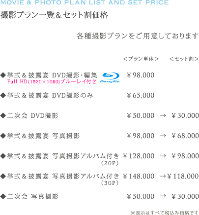 アルバム作成までを含めたプランです。