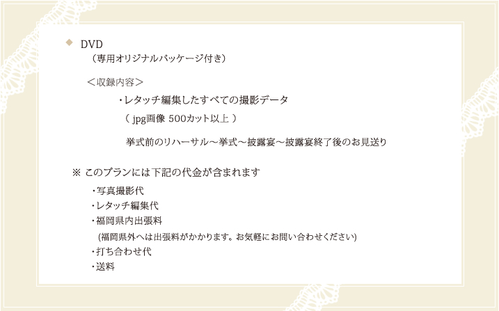 写真はレタッチ編集した上で600カット以上すべてのデータをお渡しいたします。