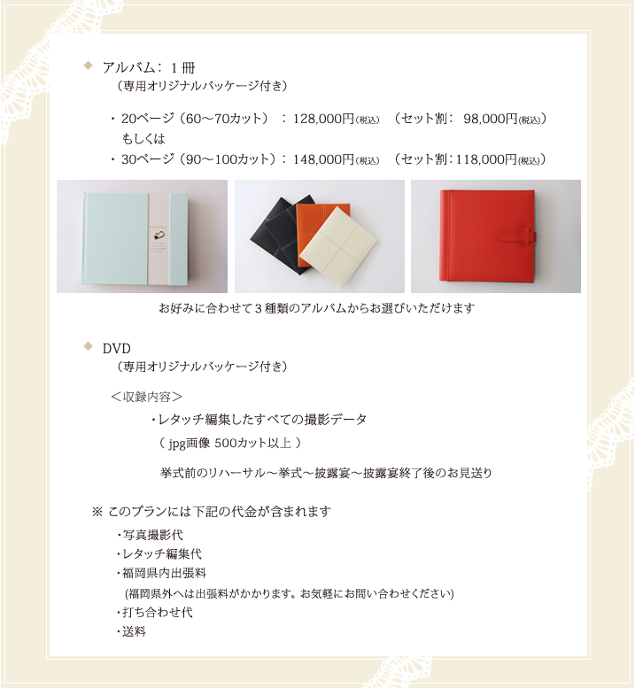 Albumも欲しいお客様はプラス3万円から高級アルバム1冊付きになります。