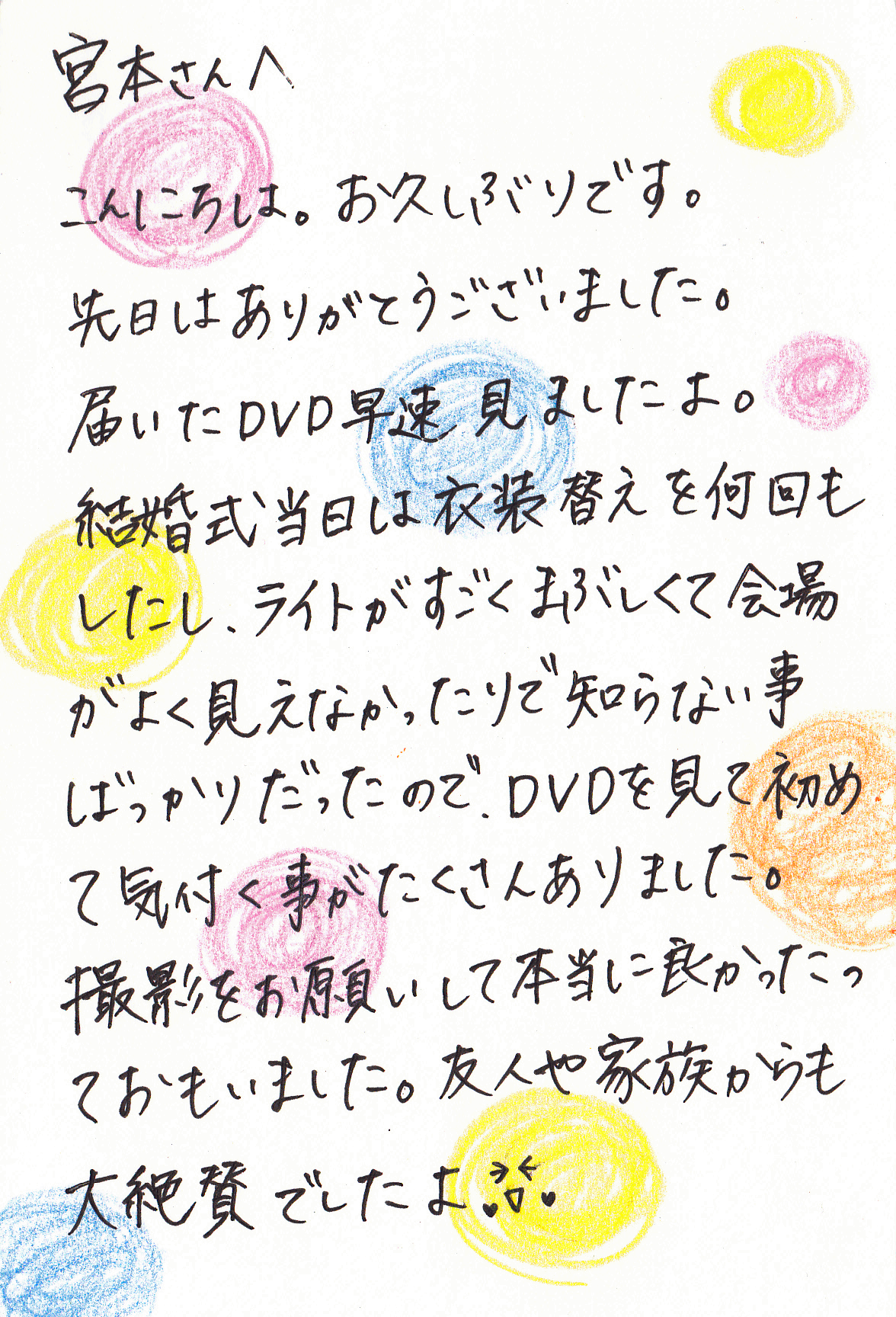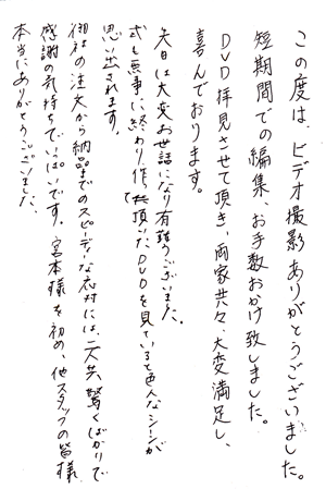 「本当に本当に素敵なDVDを作成して頂き、心から感謝しております☆」